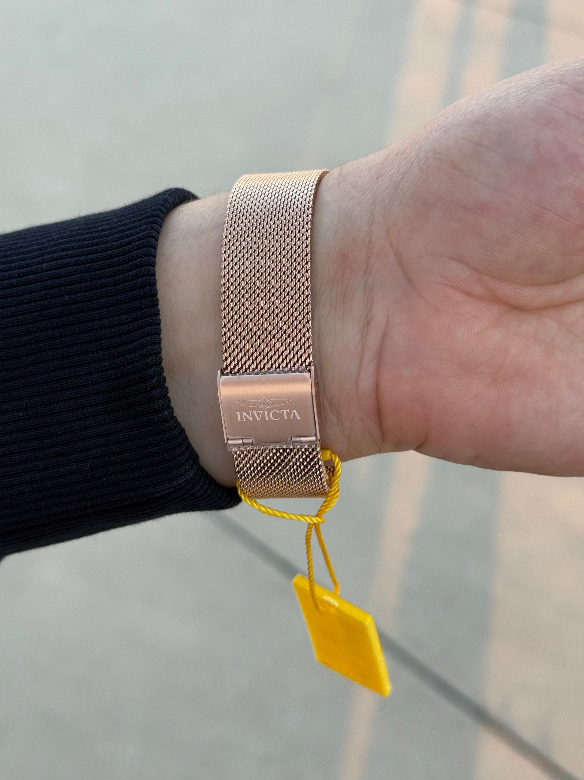 Reloj Invicta en oro rosado con malla metálicaDiseñado en acabado oro rosado con malla metálica fina, ofrece un estilo moderno y elegante ideal para cualquier ocasión. Cuenta con cristal resistente y mecanismo de precisión.Incluye garantía de 3 años y estuche original Invicta.